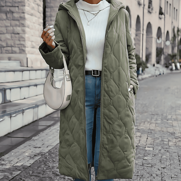 Rimanete al caldo e alla moda con questo morbido cappotto trapuntato con cappuccio imbottito, progettato per una vestibilità rilassata che garantisce il comfort per tutto il giorno. Perfetto per un abbigliamento casual o quotidiano, questo cappotto a tutta lunghezza è realizzato in un'accogliente miscela di fibre che offre un tocco di lusso. Ideale da sovrapporre a maglioni e jeans o da abbinare a stivali, è l'aggiunta perfetta al vostro guardaroba autunnale e invernale. Questo cappotto è un must per le donne che cercano un capospalla elegante e versatile.