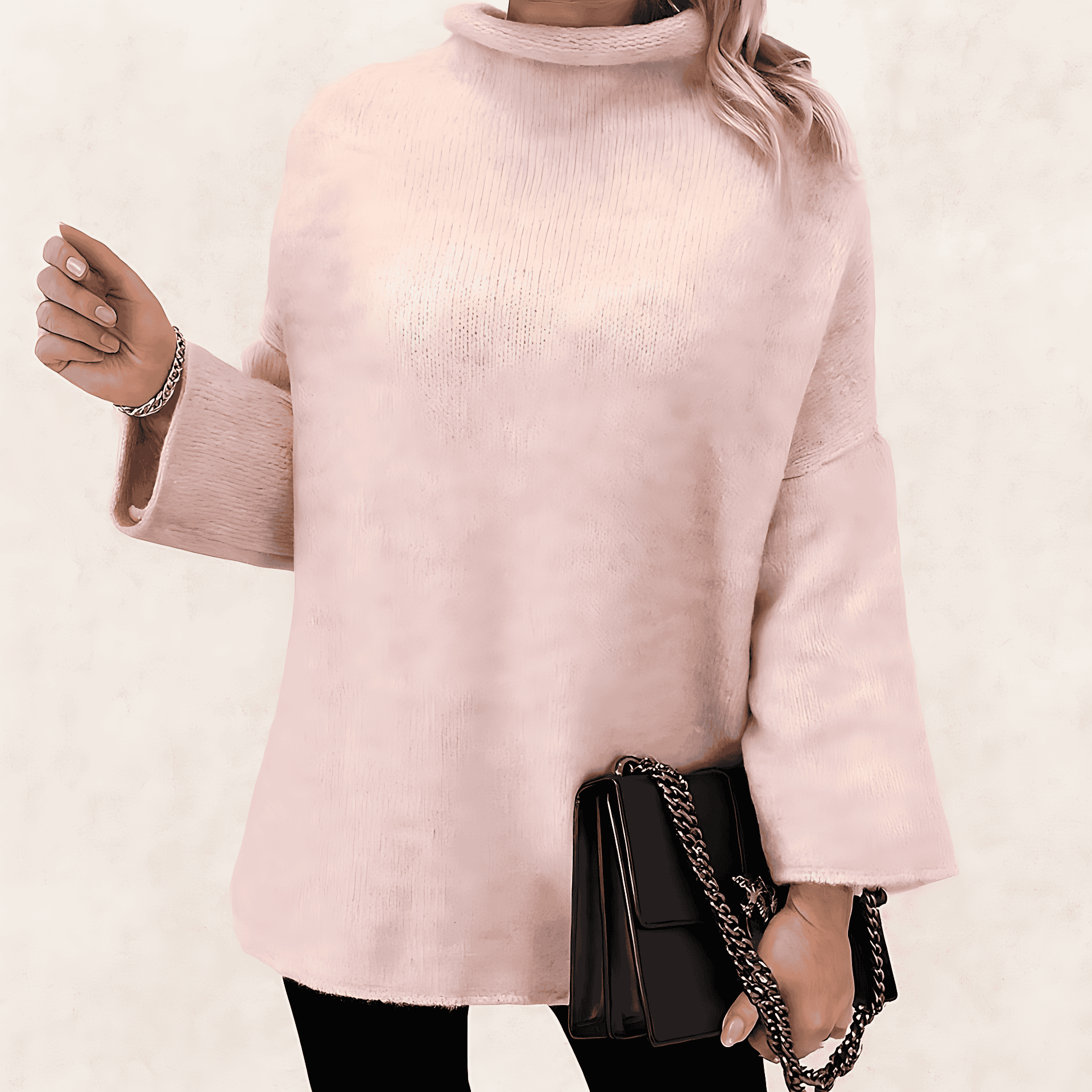Donna - Felpa a collo alto in maglia morbida - Manica svasata