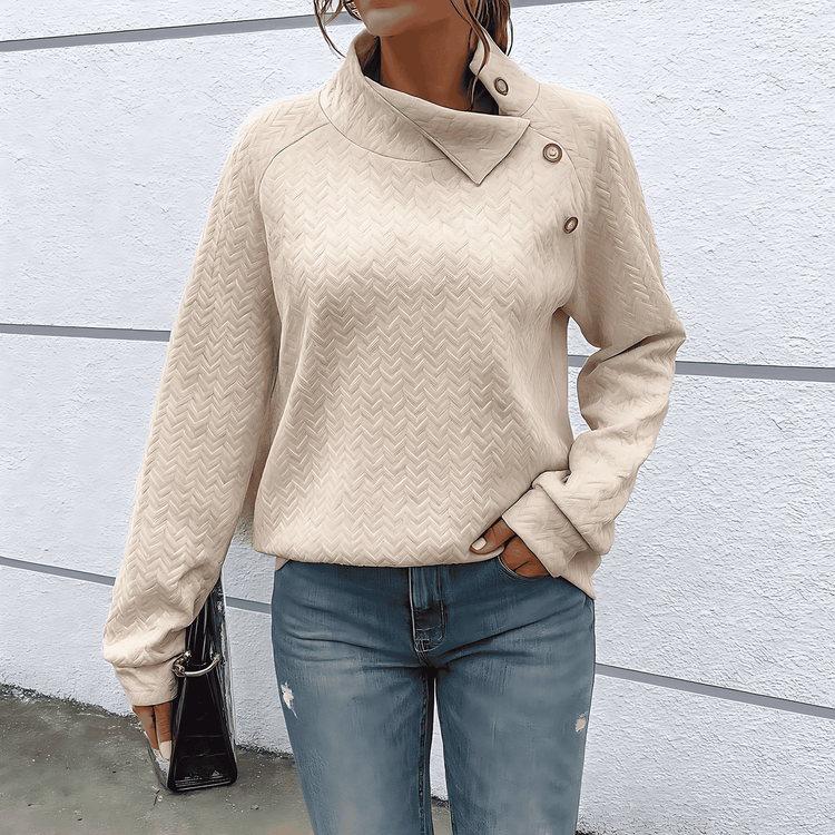 Abbracciate il comfort e lo stile con la nostra felpa Chevron Vestibilità rilassata in maglia, progettata con un collo alto e un'esclusiva trama a maglia chevron che aggiunge un tocco di raffinatezza. Gli eleganti dettagli dei bottoni ne esaltano il fascino, rendendola la scelta perfetta per le uscite casual o per gli accoglienti fine settimana. Abbinatela senza sforzo a jeans dal lavaggio scuro e stivaletti per un look chic da giorno, oppure migliorate il vostro look con una gonna e gioielli vistosi per un evento serale. Realizzata in un morbido materiale misto, questa felpa è un must per il vostro guardaroba autunnale e invernale.
