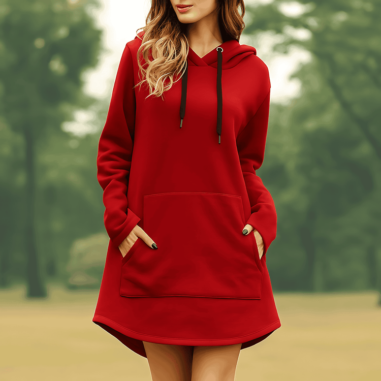 Questa maglia lunga da donna con cappuccio combina uno stile sportivo con una silhouette casual, rendendola un'aggiunta versatile al vostro guardaroba. Grazie al cappuccio con coulisse e alle maniche lunghe, offre calore e comfort per le giornate più fresche, sia che siate a casa che fuori. Il design allungato permette di indossarlo come un abito o un maglione lungo, garantendo libertà di movimento e una facile vestibilità per tutti i giorni. Abbinatelo ai leggings o indossatelo da solo per un look chic e rilassato adatto a qualsiasi occasione.