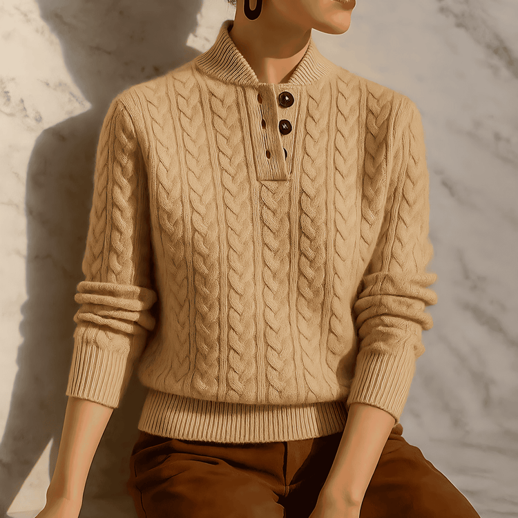 Donna - Felpa Pullover in maglia a cavi - Collo a imbuto