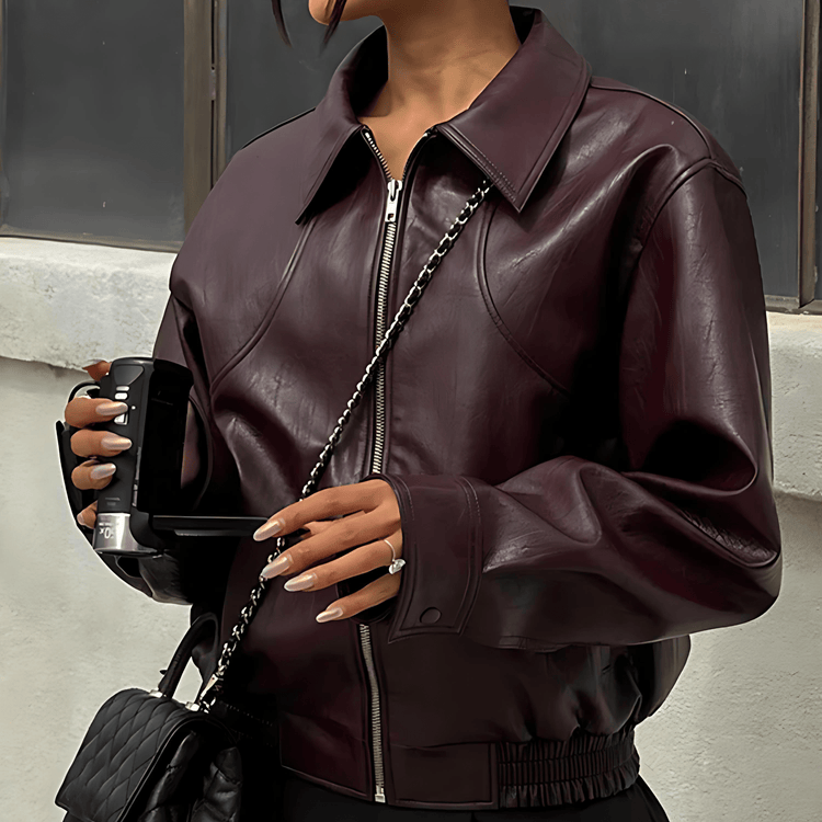 Scoprite l'elegante giacca da motociclista da donna realizzata in ecopelle di alta qualità, progettata per il comfort e l'eleganza moderna. Questa giacca alla moda presenta un taglio sartoriale che esalta la silhouette femminile, con un'apertura a zip contemporanea e dettagli di cucitura unici per aggiungere carattere. Perfetto per le uscite casual o per le occasioni speciali, questo capo versatile si abbina senza sforzo ai jeans o a un abito chic. Elevate il vostro guardaroba con questa giacca biker essenziale che combina perfettamente moda e funzionalità.