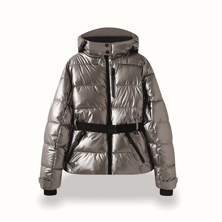 Donna - Giacca Puffer con cappuccio e cintura - Stile accogliente