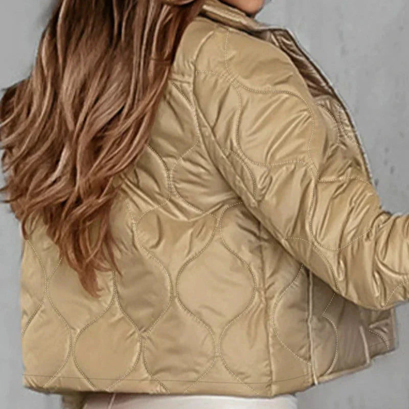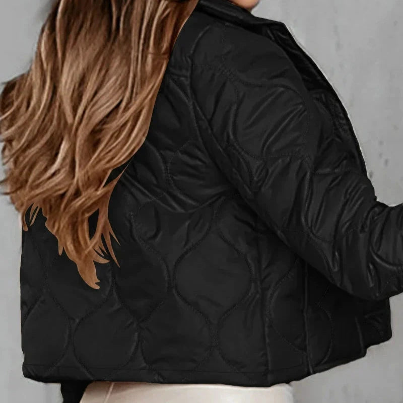 Questa giacca trapuntata da donna presenta una vestibilità cropped di tendenza con un'imbottitura leggera per garantire comfort e stile. Progettata con una chiusura a bottoni sul davanti e un classico colletto da camicia, aggiunge un tocco moderno a qualsiasi outfit. Perfetto per la primavera e l'autunno, questo strato versatile si abbina senza sforzo a jeans, top o abiti. Una scelta elegante per l'abbigliamento casual e le uscite sociali, che offre calore senza ingombro.