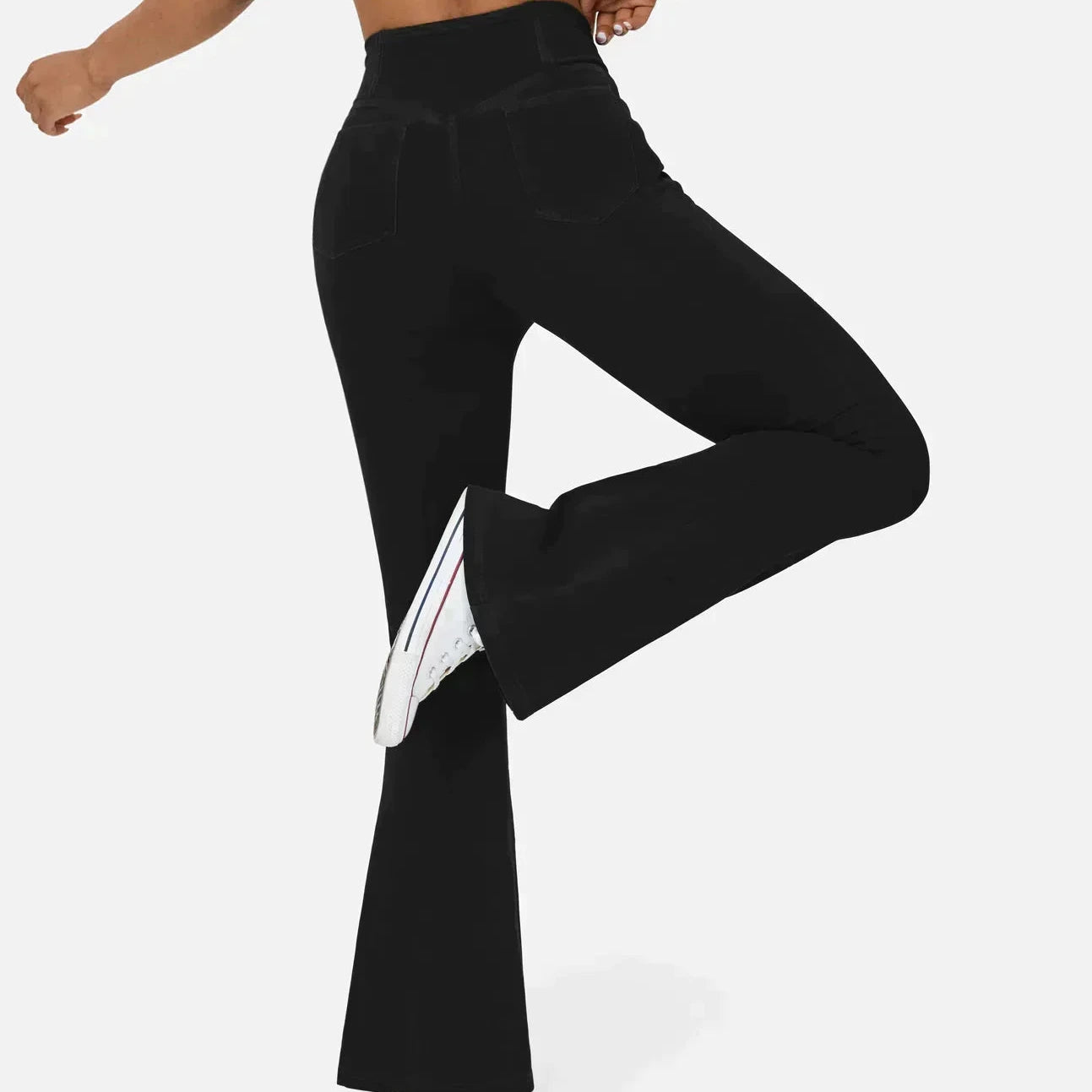 Questi jeans svasati a vita alta da donna sono caratterizzati da un'inconfondibile cintura incrociata che assicura una vestibilità sicura e lusinghiera. L'elegante gamba svasata aggiunge un tocco moderno alla classica silhouette del denim. Versatili e facili da indossare, si abbinano senza sforzo ad outfit casual e chic. Comodi e alla moda, sono perfetti per l'abbigliamento quotidiano e per le occasioni sociali.