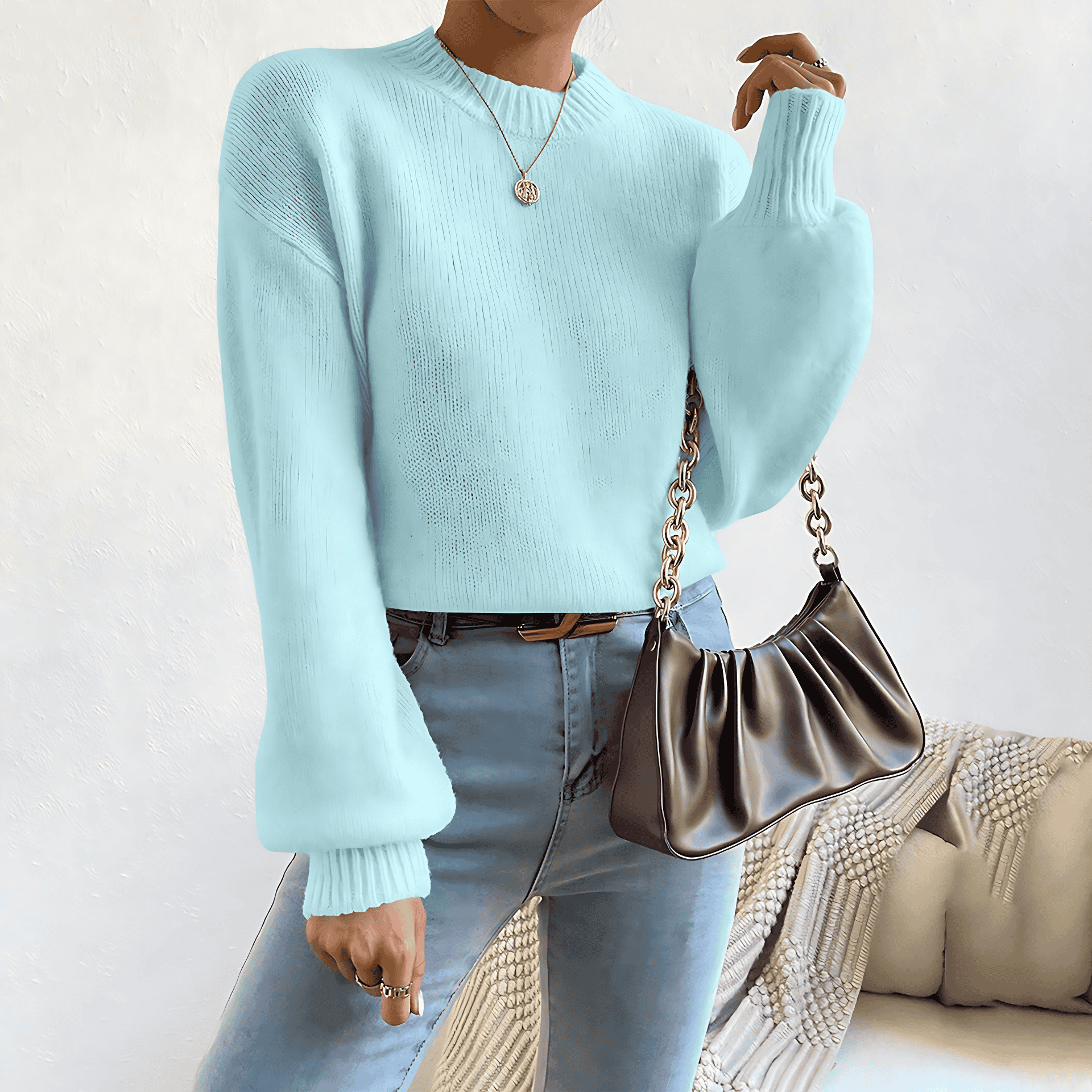 Sperimentate il massimo comfort con questa maglia a girocollo lussuosamente morbida, progettata per una vestibilità rilassata. Perfetto per essere indossato tutti i giorni durante l'autunno e l'inverno, è caratterizzato da eleganti polsini a coste che elevano i vostri vestito informale. Abbinatelo senza problemi ai jeans per un look classico o infilatelo in una gonna per un insieme chic. Questo maglione da donna è un'aggiunta essenziale al vostro guardaroba e offre un mix di calore e stile per ogni occasione.