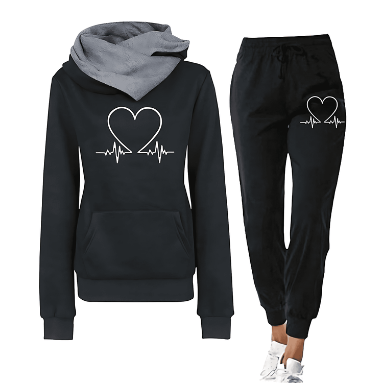 Donna - Set di abbigliamento da casa - Felpa con cappuccio e Joggers con stampa Battito del cuore