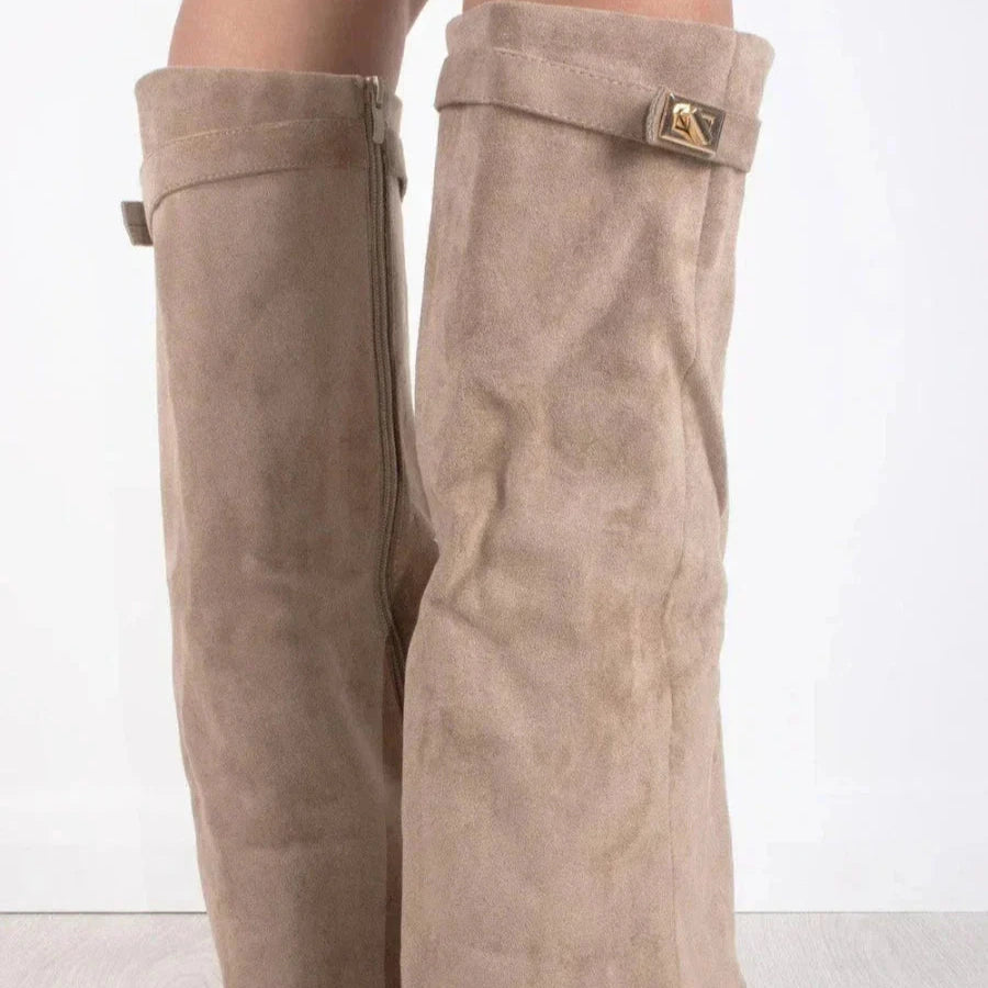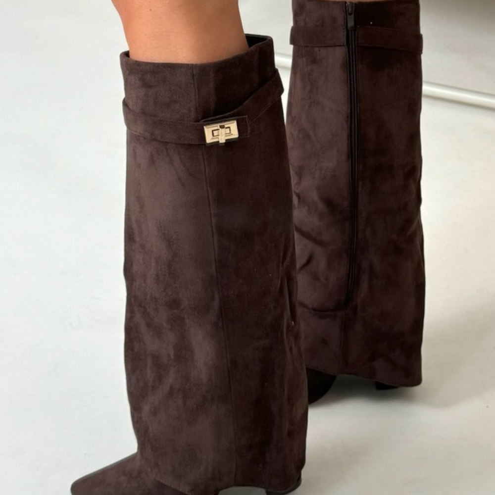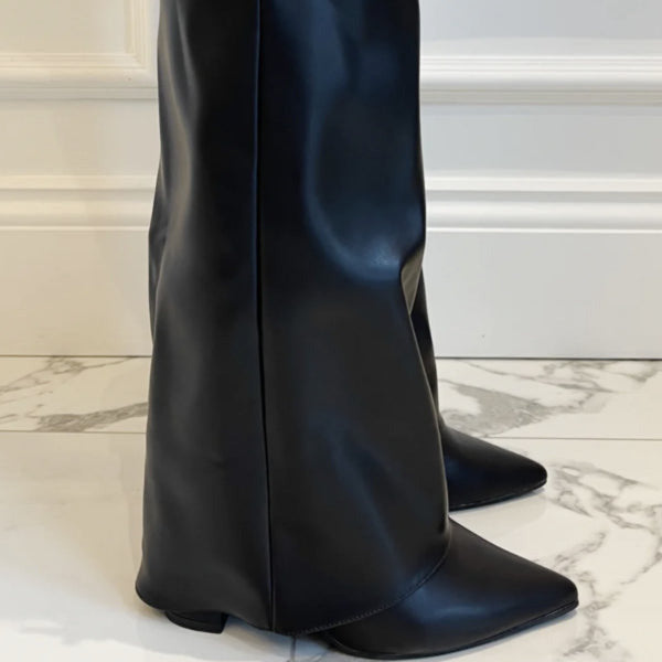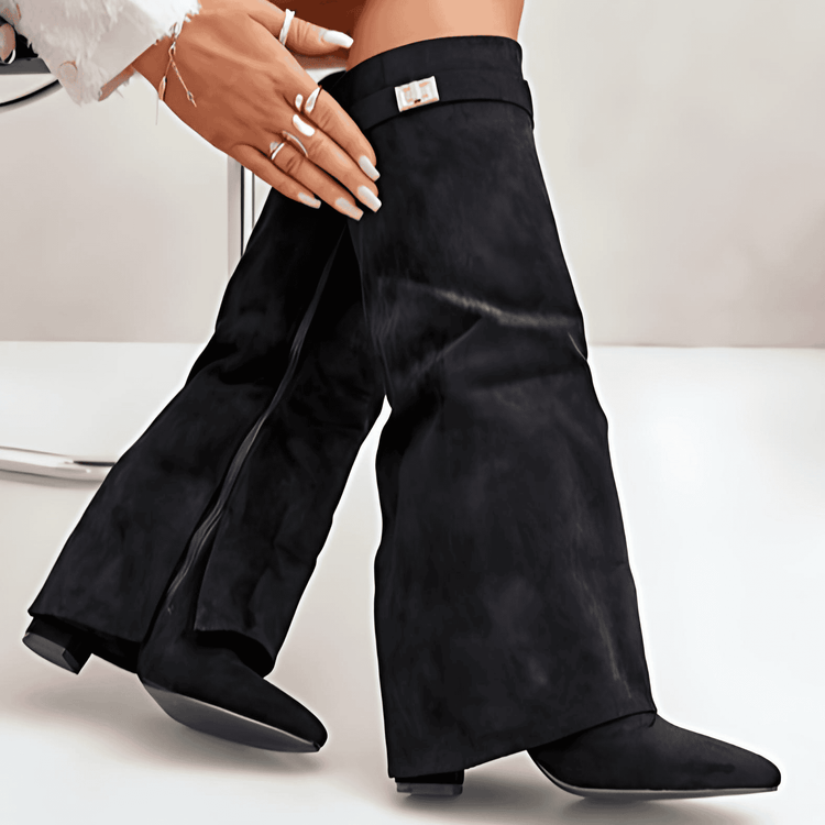 Questi stivali alti fino al ginocchio presentano una punta appuntita, una silhouette a gamba larga e una finitura in morbida pelle per un look moderno e alla moda. Progettati con una cerniera laterale per una facile indossabilità e un gambo strutturato che mantiene la forma, offrono sia stile che comodità. Il tacco a blocco di media altezza aggiunge altezza senza compromettere la stabilità. Ideali per elevare gli outfit di tutti i giorni o per aggiungere un tocco di classe ai look stagionali.