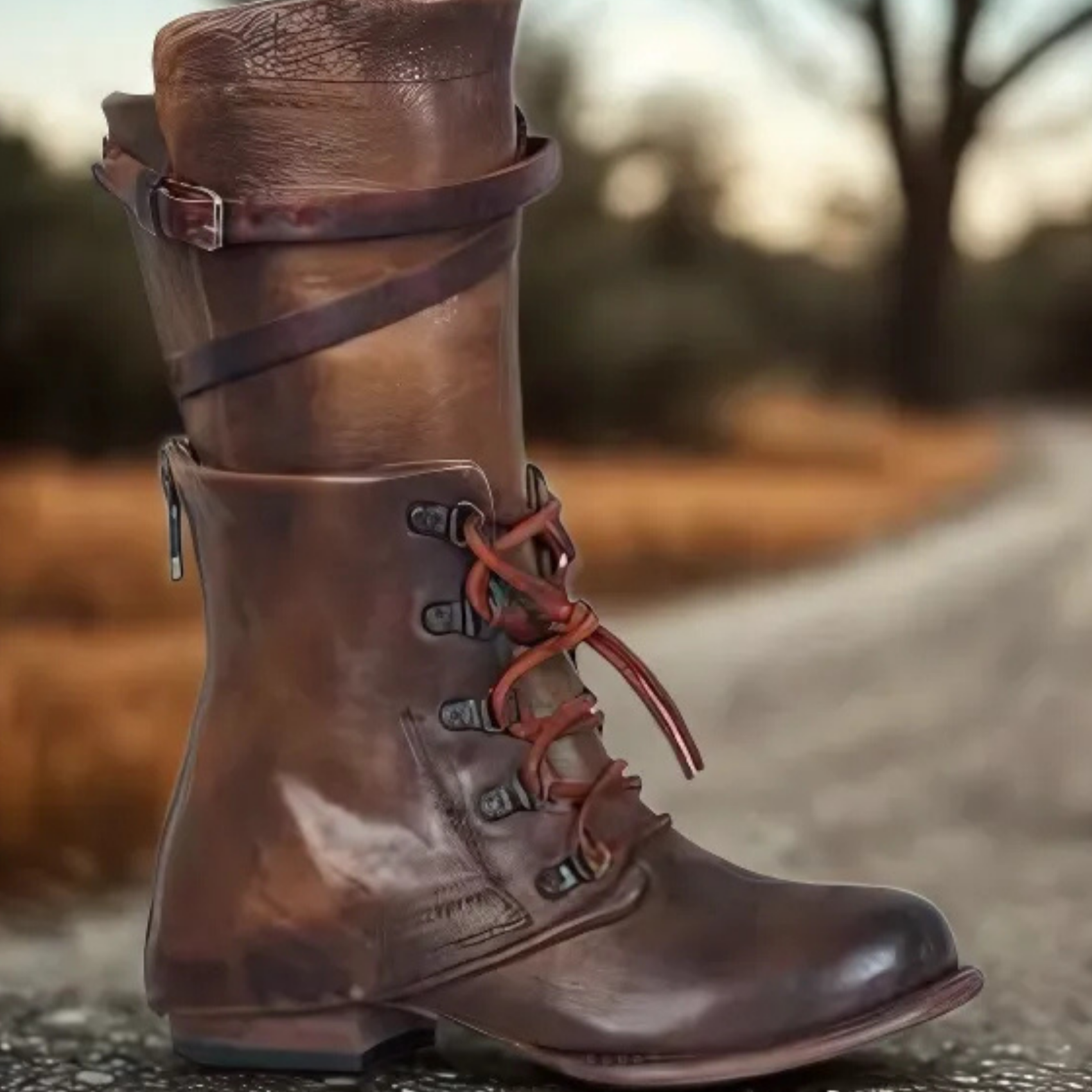 Donna - Stivali allacciati a metà polpaccio - Cinturino con fibbia