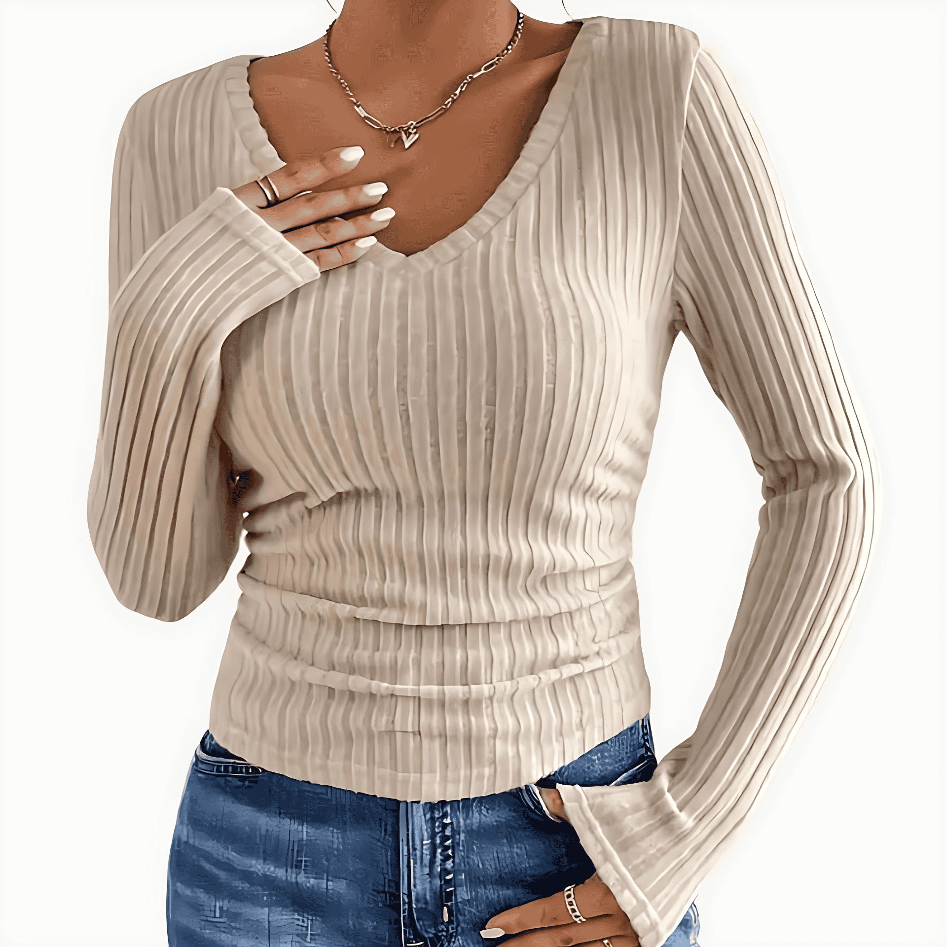 Donna - Top a maniche lunghe a coste - Vestibilità sottile